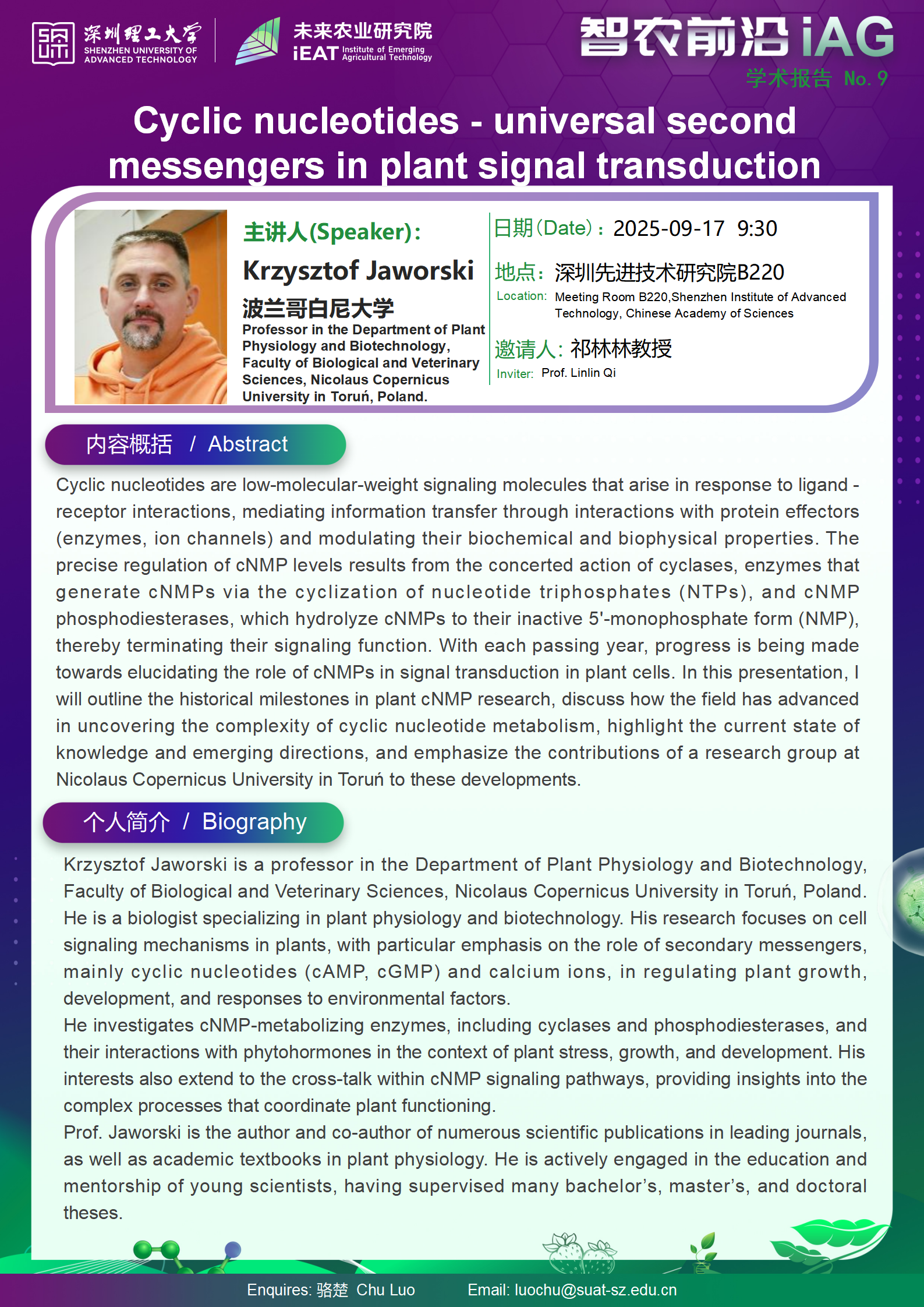 Institute of Emerging Agricultural Technology--cyclic nucleotidesuniversalsecondmessengers in plant signal transduction