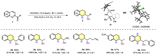 According to Yin Qin, thisstudy establishes a highly efficient sequential asymmetric transfer hydrogenation of C2-acyl quinolines and quinoxalines, delivering a series of novel chiral 1,2,3,4-tetrahydroquinolines and tetrahydroquinoxalines with adjacent in-ring and exocyclic chiral centers in excellent yield, enantioselectivity, and diastereoselectivity — dramatically expanding nitrogen heterocyclic chemical space. The core breakthrough of this technology lies in the use of a water-soluble chiral amino-benzimidazole iridium catalyst that enables the sequential reduction of carbonyl groups and heteroaromatic rings. Mechanistic studies show that both reduction steps are precisely controlled by the catalyst without involving dynamic kinetic resolution. This method enables the controllable synthesis of all four stereoisomers of chiral tetrahydroquinolines. The team is currently extending this sequential reduction strategy to other heteroaromatic ring systems, aiming to provide a new paradigm for expanding the chemical space of chiral heterocyclic compounds.