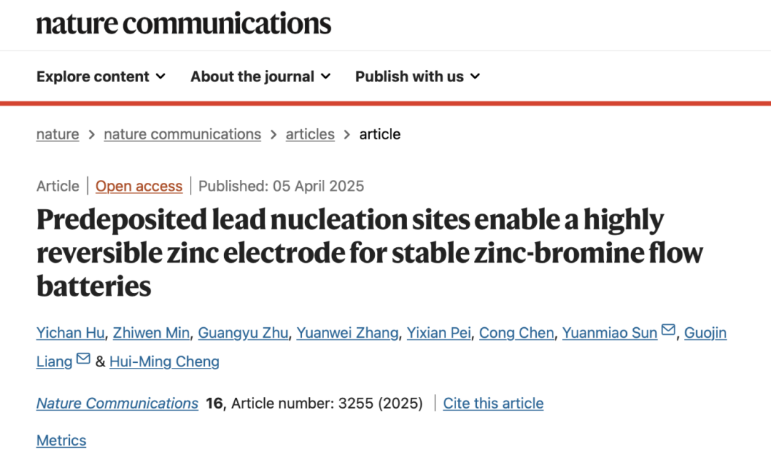 Nature Communications | “Taming” zinc metal with a lead lattice: Shenzhen University of Advanced Technology achieves 10-fold lifespan extension for energy-storage flow batteries