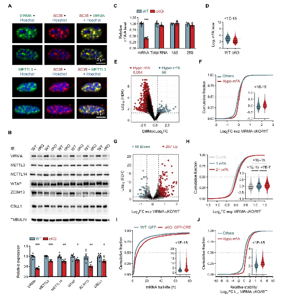 1. Core scaffold function: VIRMA, as the core scaffold protein of the m6A methyltransferase complex, its absence leads to instability of the entire complex, reducing m6A modification levels on mRNA by 60%, disrupting mRNA metabolic homeostasis (Figure 1);