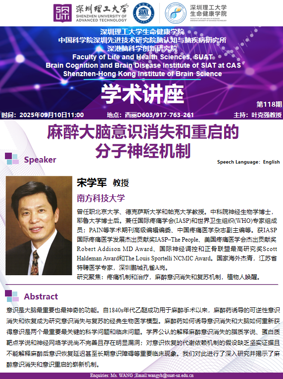 生命健康学院--学术讲座--麻醉大脑意识消失和重启的分子神经机制