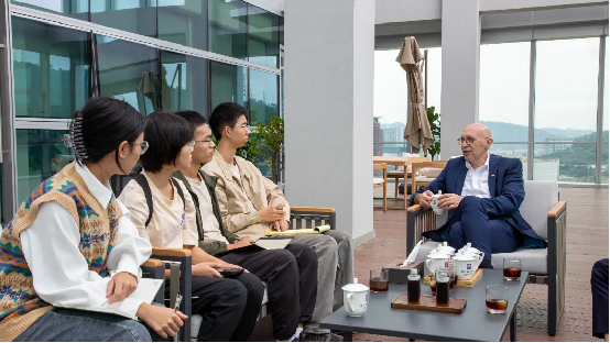 On the same day, first-year undergraduates from Dawning College—Peng Yuxuan and Mao Yihan—and from Yuan Geng College—Jiang Yuxin and He Yujie—also had face-to-face exchanges with Stefan Hell, asking for advice on their academic confusions, Stefan Hell's research experiences, and other issues.