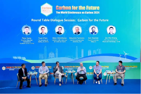 In the roundtable dialogue session, top experts in the carbon materials industry, including Professor Marc Monthioux from Toulouse University in France, Professor Mauricio Terrones from Pennsylvania State University in the United States, Professor Yuan Chen from the University of Sydney in Australia, Professor Ken Haenen from Hasselt University in Belgium, and Professor Wang Dawei from SUAT, engaged in wonderful exchanges around the theme "Exploring the Future with Carbon." They discussed the industrial application prospects of related carbon materials such as carbon nanotubes, graphene, and diamond in new energy and environmental protection fields, explored potential application scenarios of various carbon materials in future low-carbon technologies and new energy fields, and considered possible emerging new carbon materials. The experts on site placed particular high expectations on artificial diamonds and new carbon fibers.