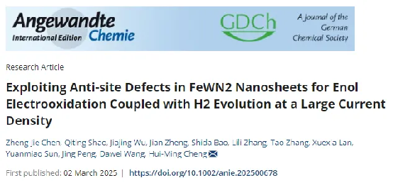 Recently, the team led by Academician Cheng Huiming (Academician Workstation, Chinese Academy of Sciences) and Assistant Professor Peng Jing (School of Materials Science and Energy Engineering, Shenzhen University of Advanced Technology) published groundbreaking results inAngewandte Chemie International Edition, revealing the critical role of Anti-site Defects in FeWN2 Nanosheets for Enol Electrooxidation Coupled with H2 Evolution.