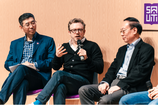 Internationally renowned conductor and YMCG Music Director Daniel Harding, Chinese conductor and YMCG Arts Committee Chairman Yu Long, London Symphony Orchestra principal flutist Davis Gareth, Berlin Philharmonic Orchestra cellist Martin Menking, Shenzhen University of Advanced Technology Provost Zhao Wei, Dean of the Faculty of Synthetic Biology Xian-En Zhang, and Dean of the Faculty of Pharmaceutical Sciences Chen Youhai held a discussion, engaging in an in-depth exploration ofthe relationship between music and technology, with nearly 200 Shenzhen University of Advanced Technology students and YMCG orchestra members listening on-site.
