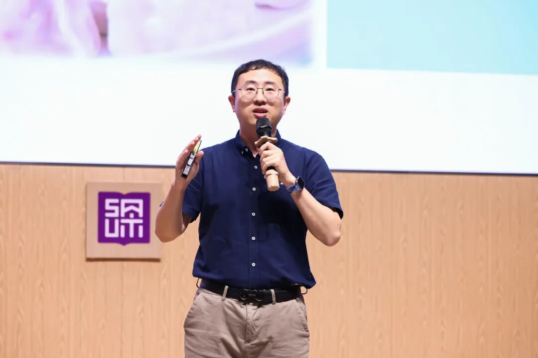 Associate Professor Liu Chang from the Faculty of Life and Health Sciences at Shenzhen University of Advanced Technology brought ascience popularization lecture titled"Unveiling the Nobel Prize Favorite: Sleep Brain Regulation"for everyone. She invited students on stage to experience brainwave monitoring, intuitively presenting differences in neural activity under different states, then entering from the complex network formed by neurons, leading to how to use the relatively simple model organism Drosophila melanogaster's brain to understand the basic principles of sleep regulation.