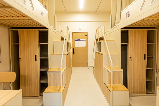 Residential colleges are students' warm "homes." Every time ending a day's courses and returning to the dorm, pushing open the door is stepping into one's own little world. Bunk-over-desk design provides independent learning and living space for each person. 1.2-meter wide beds with bed curtains create a private space. Higher bed height avoids oppression when standing below. Ample wardrobe space accommodates various clothes and items. Independent bathrooms with dry-wet separation are convenient and hygienic; separate sinks mean no fighting for "battlefield" in morning washing, giving convenient life experience.