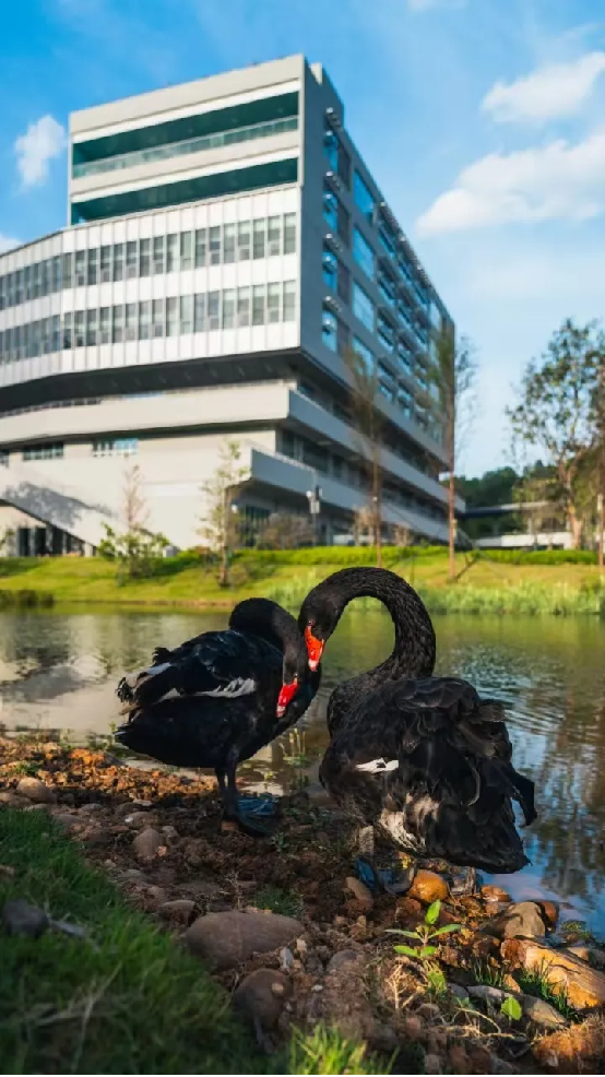 Strolling along the path by Central Lake, you might encounter two elegant black swans. They swim leisurely on the lake, feathers gleaming in sunlight, reflecting with the water like an exquisite painting.