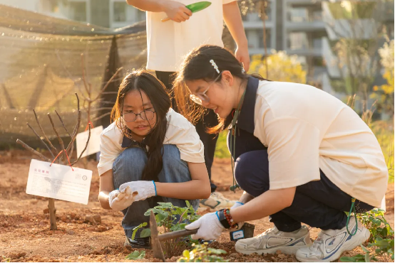 SUAT is built along the mountain, with undergraduate residential colleges at the foot. Every evening at sunset, a group of students spontaneously carry hoes, shovels, and other farming tools after finishing the day's studies, exit the back door of the college, follow the mountain path to a plot of "farmland," and start planting. Students named it "Yuan Xiaotian." Through their daily labor of digging drainage ditches, moving stones, and improving soil, this "farmland" transformed from barren land full of stones, tiles, and rotten wood into neatly grooved fields with vibrant red earth; students also planted trees like Chinese viburnum, blueberry, fig, and kumquat, as well as fruits and vegetables like tomatoes and wild strawberries. Students actively engage in planting practice in spare time, using professional knowledge to optimize planting techniques and sensing the power of life growth in cultivation.