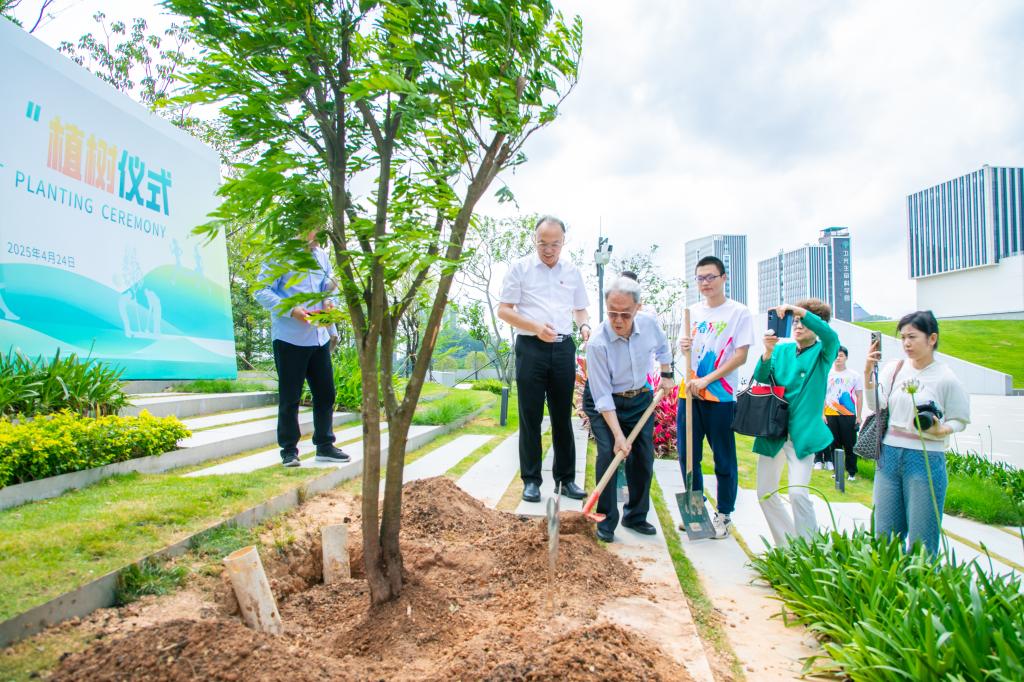 讲座结束后,王蒙和同学们一起来到象征着对青春、对未来、对梦想无限热爱和不懈追求的深圳理工大学“青春林”,并亲手种下一棵蕨木患树苗,为这片“青春林”正式开林。