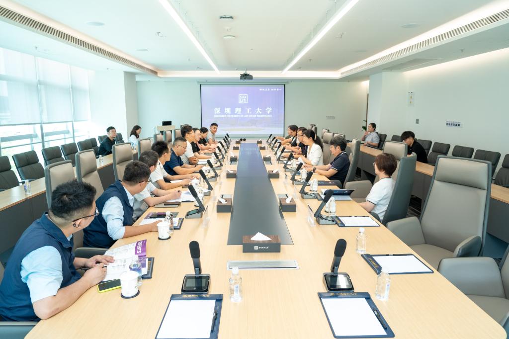 随后,双方就人才联合培养、学生实习就业、校企深度合作、资源共享、产学研战略协同、组织共建等领域开展深入座谈交流。会上,深圳理工大学首先介绍了办学整体情况,重点解读了“科教融汇、产教融合办大学,学科交叉建专业,三院一体育人才”的办学特色,详细阐述了“学院—研究院—书院”三院一体协同育人模式,并结合学校优势学科布局,分析了未来发展方向。