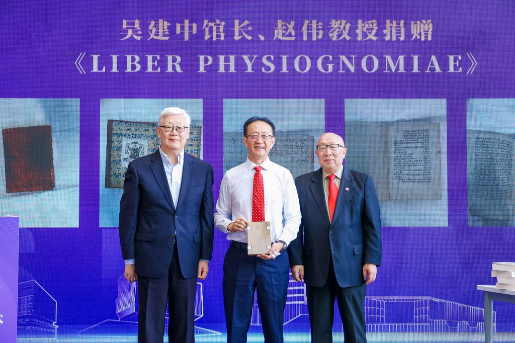 上海图书馆原馆长吴建中介绍其赠品:俗称“摇篮本”的拉丁文早期科学图书《Liber Physiognomiae》。樊建平代表学校接受捐赠,并向其授予荣誉证书。