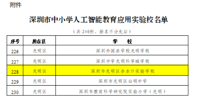 学校获评教育部教育技术与资源发展中心(中央电化教育馆)“领航社人工智能项目校”、深圳市“人工智能应用实验校”、光明区“科技·生态·幸福”教师发展基地项目研究学校、光明少年科学院“机器人编程研究所”“昆虫研究所”等称号。